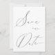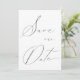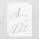 Caligrafia Elegante Salve o Cartão de Data com "Salve nossa Data" na Frente e suas informações de casamento na parte traseira. O ajustado perfeito para um casamento formal clássico. Todos os elementos de texto na parte traseira podem ser alterados e todas as cores deste modelo de Salvar a Data também podem ser alteradas.