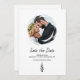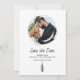 Casamento casual de pinheiros russos salva o anúncio de data, com uma simples design de tipografia. Com a inscrição personalizável, você adiciona suas próprias informações. Você também adiciona sua própria foto para adicionar personalização. A parte de trás tem um fundo verde sábio e lhe dá a opção de adicionar seu site de casamento e um código QR para seus convidados digitalizarem. Excelente para planejar seu dia especial com estilo boho.