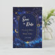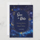 Anuncie seu dia especial com este Elegante Chic Blue Celestial Salve o Cartão de Data, onde o romance cósmico encontra o design refinado. Com um rico espaço azul escuro inspirado em fundo e um quadro gracioso e delicado, esta na moda capta a magia do céu noturno. Perfeito para casamentos celestiais, ele define um tom sofisticado e encantador para sua próxima celebração.