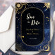 Anuncie seu casamento com charme cósmico usando este Sol Celestial e a Lua Salve o Cartão de Datas. Radiando elegância mística, o design apresenta uma mistura harmoniosa do brilho quente do sol e da luz suave da lua, cercada por estrelas cintilantes e sotaques celestes. Em tons ricos de ouro, marinho e neutrais suaves, esta carta captura lindamente o equilíbrio do dia e da noite, simbolizando perfeitamente a sua união. Ideal para stargazers, sonhadores, e almas românticas, é uma forma mágica de marcar o início da sua história de amor celestial.
