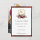 Casamento elegante, mas festivo, com tema de férias, salvo a data design com crista floral de ouro clássico, desenhado à mão, marcada por um spray colorido de flores e verduras de Natal vermelhas e brancas. Este modelo formal personalizado inclui campos de texto editáveis, além de gráficos de texto de caligrafia personalizados e borda dourada. A parte traseira apresenta um modelo de foto opcional.