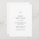 Casamento elegante salve a data com um design simples e clássico com seu monograma e seus detalhes de evento em uma fonte serif tradicional.