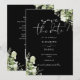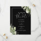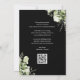 Este convite de save-the-date floral de greenery botânica preta e branca pode ser personalizado com suas informações em tipografia elegante com o código QR do site do seu casamento e detalhes no verso. Projetado por Thisisnotme©