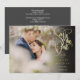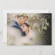 Este cartão de data de casamento elegante e sofisticado apresenta sua foto especial e uma data de casamento em letra dourada decorativa acima dos seus nomes, data e local. O verso apresenta os detalhes do seu casamento e o código QR do site do casamento. Desenhado por Thisisnotme©