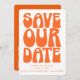 Torne seu dia especial inesquecível desde o início com este cartão "Salve a Data" inspirado no estilo retrô, apresentando tipografia laranja ousada que lembra os groovy anos 1970. Perfeito para casais que amam estética lúdica e nostálgica, este design define um tom divertido e vibrante para as celebrações do seu casamento. Ideal para temas de casamento modernos boho, retrô ou não convencionais, este cartão pode ser personalizado com seus nomes, data e detalhes do local para criar um anúncio memorável que seus convidados adorarão. Disponível impresso ou como download digital. Adicione seu código QR no verso.