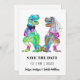 Alegre-se com este engraçado dinossauro temido casamento T Rex noiva e noiva salvem a data. Fácil de personalizar com os nomes da noiva e do noivo e a data do casamento. Colorida coloração d'água T Rex noiva e ilustrações nobres com tipografia moderna. Arte original única da artista Catherine Sweetman