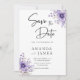Reserve A Data Casamento com Aquarela Floral Roxa