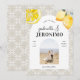Surpreenda seus amigos e familiares com estes elegantes convites de save the date, apresentando azulejos mediterrâneos, limões aquarela e foto e texto personalizados à sua escolha. Adicione facilmente os seus detalhes clicando na opção "personalizar".