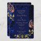 Este elegante casamento cercado, salve o anúncio da data com belo azul real, ouro brilhante ornamentado e borboletas cor-de-rosa delicadas é uma adição elegante ao seu evento.