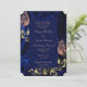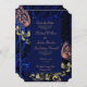 Esta elegante passagem de casamento salva o anúncio da data com lindo azul real, ouro brilhante ornamentado e borboletas cor-de-rosa delicadas é uma adição elegante ao seu evento.