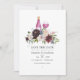 Convite de casamento para degustação de vinho floral trendy bordo - marsala e azul-marinho com detalhes em azul poeirento, rosa e dourado-rosado projetado para ser personalizado de forma rápida e fácil para os detalhes do seu evento.