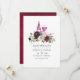 Convite de casamento bordô moderno - marsala e azul naval com flores para degustação de vinhos com acentos de azul poeirento, rosa bege e dourado rosado, projetado para ser personalizado rápida e facilmente de acordo com os detalhes do seu evento.