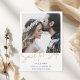 Crie uma primeira impressão glamourosa com o nosso Casamento com Foto de Caligrafia a Ouro Moderna para Salvar a Data. Este design equilibra perfeitamente o minimalismo contemporâneo com um toque de luxo, apresentando sua foto de noivado favorita sobreposta com uma elegante escrita à mão em ouro. (efeito impresso em cor dourada) É uma maneira sofisticada e elegante de anunciar a data aos amigos e familiares.