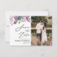 Reserve A Data Casamento com Foto de Rótulo de Água Floral Roxa