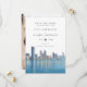 Este convite de casamento em aquarela da silhueta de Miami pode ser personalizado com suas informações em tipografia moderna e foto especial no verso. Criado por Thisisnotme©