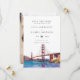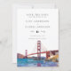 Este convite de casamento em aquarela da Ponte Golden Gate de São Francisco pode ser personalizado com suas informações em tipografia moderna e foto especial no verso. Criado por Thisisnotme©