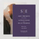 Este cartão chic e minimalista para salvar a data do casamento pode ser personalizado com as iniciais do seu monograma e detalhes do dia do casamento em um fundo roxo. Com sua foto especial no verso. Criado por Thisisnotme©