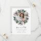 Elegante botânico salva as datas tem uma foto de noivado favorita cercada por uma coroa redonda de flores magnólias cor-de-rosa e folhas de eucalipto em uma elegante paleta de aquarela rosa e verde. Carteira invertida em uma rica cinza de prata com flores coordenadas. Personalize com seus nomes, data do casamento e local. Outras cores estão disponíveis