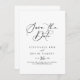 Este casamento de na moda caligrafia idílica salvo a data é perfeito para um casamento rústico. O design simples e elegante apresenta a tipografia de scripts clássicos e ricos em preto e branco.