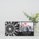 Anuncie seus futuros nupciais temáticos de dezembro, janeiro ou fevereiro de inverno nas terras maravilhosas com o elegante Casamento no inverno Black and White Snowflake Save the Date Cartão com fotos. Personalize-o com os seus nomes pessoais, data e imagem da cerimônia de casamento. Este clássico cartões de fotos de casamento de inverno personalizado apresenta um intrincado design branco de floco de neve em um fundo preto.