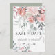 Lindas flores modernas e elegantes em rosa delicado e creme com folhagem suave em aquarela. Peônias rosas. Parte de trás do cartão em verde pastel suave. Este “Save the Date” é elegante, romântico e um cartão para todas as estações. Além da sofisticação. Uma tipografia simples e chic é adicionada para finalizar este lembrete de casamento em uma apresentação além de bela para todos os seus convidados. Absolutamente deslumbrante.