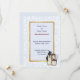 Boa noiva e noiva romântica do Pinguim e noiva em seu traje de casamento com fundo azul-claro-úmido. Estas Cartões salve a data estão prontas para você se personalizar com suas informações de casamento.