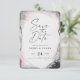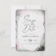 Wisteria de Aquarela abstrato Eetérea, Casamento Púrpura Claro Salve as Cartões de Data. Este design de casamento moderno é belo pintado à mão com cores ricas que são perfeitas para Primavera ou Verão. Mostrada na Paleta de Cores Púrpura de Wisteria de Wisteria: Wisteria, Cinzas do rio, Azul Pó, Rosa Dogwood e Verde Laurel. Com detalhes falsos da folha de brilho metálica, e uma fonte de script de assinatura maravilhosa com caudas, a coleção de casamentos de cor aquática etérea certamente fará seu casamento memorável e bonito! Para ver mais, procure as coleções de casamento de 2021 da Chic Paperie para ver mais designs de tendências e cores de casamento para este ano.