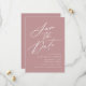 Elegante salve a data com "Salvar a Data" exibida em um script de caligrafia branco com um fundo rosa empoeirado. Personalize a caligrafia, salve a data com seus nomes, data e local do casamento e site do casamento. A design não-fotográfica coordena-se com a nossa coleção de casamento Elegante Calliografia.