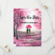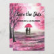 Cartões salve a data representam casal de amor de cerejeira florada com casamento de guarda-chuva vermelho. Linda sakura rosa, arte japonesa de flores... seu convidado adorará esses cartões salve a data elegantes e na moda. Você pode personalizá-los com seus próprios nomes e detalhes. Ordene hoje, para recebê-los a tempo.