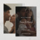 Capture a essência da sua história de amor com nossos cartões de Save the Date de Casamento com Sobreposição de Foto Moderna Elegante. Esses cartões lindamente projetados apresentam um layout elegante e minimalista, onde sua foto de noivado favorita é o centro das atenções. A tipografia sofisticada, sobreposta à sua foto, garante que seus nomes e data de casamento sejam os pontos focais perfeitos, adicionando um toque de classe e elegância moderna.