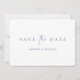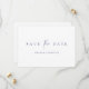 Este simples casamento chic salve a data da modelo de carta lisa apresenta uma design elegante, minimalista e moderna. A cor de todo o texto de ambos os lados é uma elegante sombra escura e de azul. A frente apresenta seus primeiros nomes e uma mensagem 'save the date' veiculada com uma combinação impressionante de duas fontes distintas, com 'the' em um script leve e fluente entre o resto da mensagem, que é, em cima, com uma aparência formal arrojada e nítida. Este elemento design está incluído em ambos os lados da placa e não pode ser alterado, embora você possa optar por excluí-lo na parte traseira para uma aparência ainda mais simples. E no verso você pode, claro, além de substituir nossas informações de exemplo por suas próprias, excluir campos de texto que você não precisa, ou mudar o texto, bem como mudar a fonte, o tamanho e a cor. A cor de fundo padrão em ambos os lados desta placa é definida como transparente, para permitir que a cor do papel sirva simplesmente como tom base. Mas você pode editar isso e mudar a aparência de um ou de ambos os lados nesse aspecto, bem como para se adequar ao seu estilo. Personalize este casamento elegante e minimalista, salve o modelo de cartão simples com as ferramentas intuitivas de edição do zazzle e a sua inspiração e torne-o exclusivamente seu!