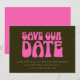 Casamento Custom Retro Groovy 70s Rosa Quente e Verde Salve a Data
