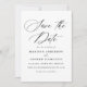 Anuncie seu casamento com elegância eterno usando nossos cartões salve a data preto e branco. Apresentando "Salvar a Data" em uma caligrafia negra graciosa sobre fundo branco, esse design exumenta simplicidade e sofisticação. Os casais podem personalizar o cartão com seus nomes, data do casamento, local e site do casamento, todos exibidos em letras negrito para um toque moderno. Perfeito para definir um tom clássico para seu grande dia, esses cartões personalizáveis combinam estilo e funcionalidade, garantindo que seus convidados marquem seus calendários para sua celebração especial.