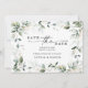 Este design elegante apresenta um delicado buquê de aquarela de eucalipto, folhagens e enfeites dourados. Clique no botão Personalizar e "Clique para personalizar ainda mais" para editar a cor da escrita do texto. Adicione uma foto no verso!