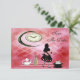 Convites de casamento de bebê "Save the Date" da Alice no País das Maravilhas rosa bonita. Convites surreais, fofos e bonitos da Alice no País das Maravilhas com uma silhueta preta vintage de Alice carregando um flamingo rosa elegante. Ela está em pé no topo de uma escada cor-de-rosa ao lado de um ornamento de lua crescente dourada com um relógio pendurado nela. Escrito no relógio está "Estou atrasada, estou atrasada para um encontro muito importante". Também na escada há um bule de chá branco bonito, uma garrafa "beba-me" fofa e um coelho branco num chapéu preto de louco. No verso dos convites há uma bela base de renda e pérolas brancas impressas com rosas cor-de-rosa para você personalizar com os detalhes do seu evento, o arauto do coelho branco, relógio de bolso dourado e um coração de torta de geleia. Convites de arte de fantasia elegantes, modernos, chiques e glamorosos. Tenho produtos combinando na minha loja. Se precisar de ajuda para personalizar o seu produto, por favor entre em contato comigo através