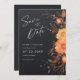 Espantoso e requintado, este Elegante Black Fall Floral Watercolor Wedding Salva o Cartão Data é ideal para casais que preferem uma mistura de eternos com estética contemporânea e encanto tradicional. Inspirados pelas cores quentes e convidativas do outono, as impressionantes flores florais florais que florescem em tons quentes de terracota e laranja queimado são colocadas contra um fundo negro cativante, infundindo uma sensação do romance da estação nos seus preparados de casamento. Anuncie seu casamento em estilo com este convite luxuoso e sofisticado, perfeitamente adequado para qualquer celebração íntima ou grandiosa. Ideal para qualquer tema de casamento, incluindo um casamento negro, casamento outono, casamento de boho, casamento rústico ou casamento de campo. Altere o tamanho do texto, as cores, os estilos de fonte e o posicionamento para o seu gosto usando a ferramenta design. Para obter itens correspondentes, visite a coleção de convites do Black Floral Wedding.