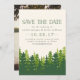 Nossos cartões de "save the date" de casamento com pinheiro rústico têm uma vibração legal do Noroeste, com uma floresta exuberante de pinheiros em tons ricos de verde, variando de verde pérola claro e grama a caçador profundo. Perfeitos para casamentos em ambientes florestais, de bosque ou montanhosos, esses "save the dates" apresentam um fundo marfim quente com os detalhes do seu casamento em tipografia verde caçador e cinza médio. Modelos de texto personalizados fornecem espaço para seus nomes, data do casamento, local e site do casamento. Adicione uma foto de noivado no verso do cartão, se desejar.