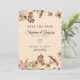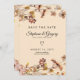 Casamento de Autumn Boho Wildflower Salve a data em tons coloridos de burgundy, pêssego, verde e laranja. Site de casamento no fundo.