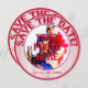 O Casamento De Beisebol Pensava Salvar as Datas, Cartões salve a data Modelo 100-Round. O lado frontal da placa é uma inserção/quadro de fotos. Remova minha foto e substitua-a pela sua. Anéis vermelhos, internos e externos, com uma foto personalizada no centro. O texto em vidro vermelho decorativo circula ao redor do topo e diz: SALVE A DATA. Na parte inferior está uma área de texto para você PERSONALIZAR. Preencha com a data apropriada, noiva e nomes de noivas, etc. Se não quiser que o texto seja apagado/limpo do modelo. O fundo externo da jante é vermelho e listras brancas de beisebol. Na parte traseira da placa, você tem o mesmo texto em cima e em baixo em um plano de fundo listrado. Pequenos embelezamentos cardíacos sentam-se entre as palavras. O fundo central é branco sólido com bolas de baseball espalhadas por toda parte. O texto decorativo e cursivo diz: Ele e HER (seus nomes) estão se elevando ao prato de casa e batendo 1000 que seu amor durará para sempre. As equipes se fundirão em uma...Os convites temáticos do casamento de baseball estão disponíveis em vários padrões. Estes convites incluem também os envelopes.