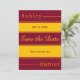 Este elegante casamento burgundy e dourado, salvo a data, é perfeito para um casamento moderno. o design de luxo apresenta uma elegante burgundy e uma caligrafia dourada num fundo burgundy e com listras douradas.