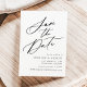 Elegante salve a data com "Salvar a Data" exibida em um script de caligrafia preta com fundo branco. Personalize a caligrafia, salve a data com seus nomes, data e local do casamento e site do casamento. A design não-fotográfica coordena-se com a nossa coleção de casamento Elegante Calliografia.
