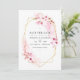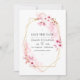 Convite de casamento de primavera floral em aquarela rosa com flor de sakura com moldura geométrica dourada personalizável para os detalhes do seu evento. Ideal para qualquer tema ou casamento no jardim.
