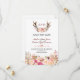 Cartão de design rústico com monograma de Rosa Floral e Galhadas com belas galhadas em aquarela com bouquet floral rosa, flechas com corações e um bouquet floral como divisor; no verso, divisor floral com iniciais em um fundo branco. Use a ferramenta Personalizar para adicionar suas informações. Você pode alterar as fontes, cores. Para itens correspondentes, visite minha Coleção Rosa Floral com Galhadas.