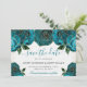 Elegante Aquarela Teal e Dourada Flores design com fundo floral branco.