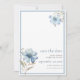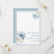 Casamento com o Código QR de Flor Azul Elegante Salve o Cartão de Data. Mínima elegância com este design de flor selvagem com sotaques azuis empoeirados e fundo nas costas. Personalize facilmente com seus detalhes. Adicione um código QR na parte traseira para que seus convidados façam uma varredura para visitar seu site de casamento ou excluir o código de amostra se não for necessário. Altere o texto e as cores de fundo se quiser combinar o seu próprio tema de cor de casamento através da opção Editar mais.