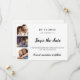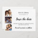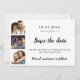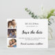 A Guardar o cartão de data para o seu casamento. O texto: Salvar a Data é gravado com um script de estilo com letra de tendência grande. Personalize e adicione 3 fotos. Você pode adicionar seu esquema de cores de festa na ferramenta design.