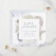 Elegante sob o mar temed Beach salve o cartão de data com coral azul empoeirado e conchas, roteiro de na moda e detalhes do evento de fontes clássicas, moderno e romântico, excelente para o casamento de praia de verão com tema do mar, casamento de destino tropical de inverno, casamento com tema do oceano litorâneo. Veja todas as peças correspondentes na coleção.