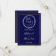Um tema náutico mínimo guarde o cartão de data. Uma corda branca sobre um fundo azul-marinho com um quadro de ouro e os nomes da noiva e do noivo em um roteiro elegante. Parte da suíte náutica de casamento mínimo com veleiro.