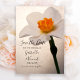Anuncie sua elegante cerimônia de casamento de março, abril ou maio na primavera com o elegante Primavera Daffodil Wedding Save the Date Announement. Este típico anúncio de floração nupcial conserva o anúncio da data apresenta uma fotografia floral de um florescimento branco de flores de daffodilo no caule com um centro de laranja ou narciso geranium e um fundo bege. Disponível como um convite impresso para envio por correio ou como um download digital para fácil compartilhamento digital online.