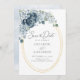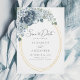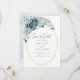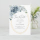 Este elegante casamento, exceto o cartão de data, apresenta uma delicada estrutura de oval dourada, decorada com buquê floral azul empoeirado. As fontes serif modernas são complementadas com um toque de caligrafia elegante. Na parte de trás está uma textura de aquarela azul empoeirada. Encontre produtos correspondentes na coleção, ou envie-me mensagem através do Zazzle Chat para obter ainda mais produtos ou ajustes de design.